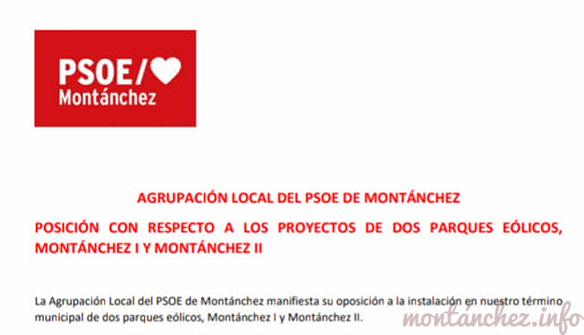 El PSOE de Montánchez se posiciona públicamente contra los parques eólicos El Partido Socialista de Montánchez, mediante un comunicado disponible en su perfil en la red social Facebook, ha publicado su posición en […]